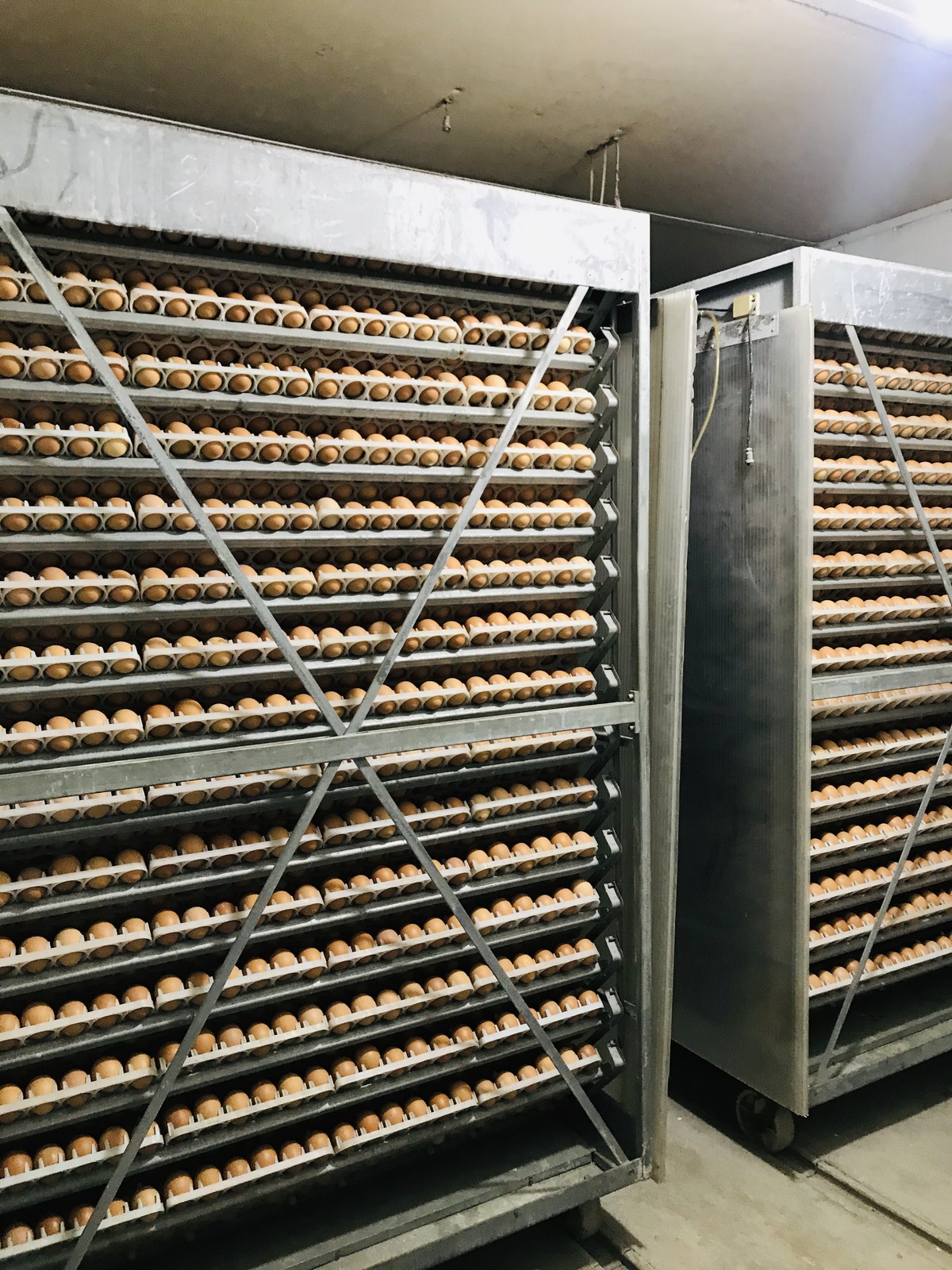 打开孵化箱,透过扑面而来的热气看去,一只只鹅蛋正在这里静待孵化。“每台孵化箱可放1.2万只蛋,加上另一处厂房的几十台设备,一年可孵抱禽苗上千万羽。”