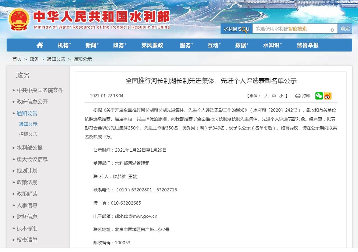 2月8日,记者从四川省河长制办公室获悉,根据《关于开展全面推行河长制湖长制先进集体、先进个人评选表彰工作的通知》,去年全国各地和有关单位按照逐级推荐、层层审核、民主择优的原则,向水利部推荐了全面推行河长制湖长制先进集体、先进个人评选表彰对象。经审查,水利部近日共表彰了符合要求的先进集体250个、先进工作者350名,优秀河(湖)长349名。