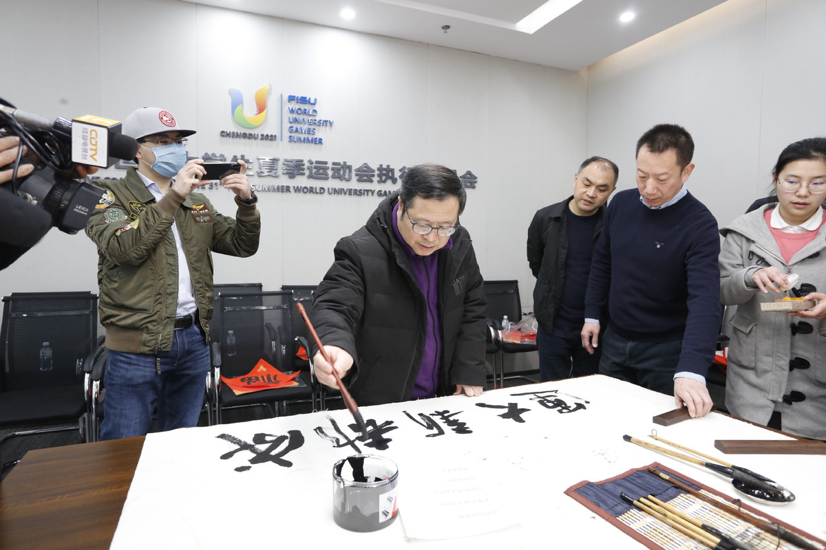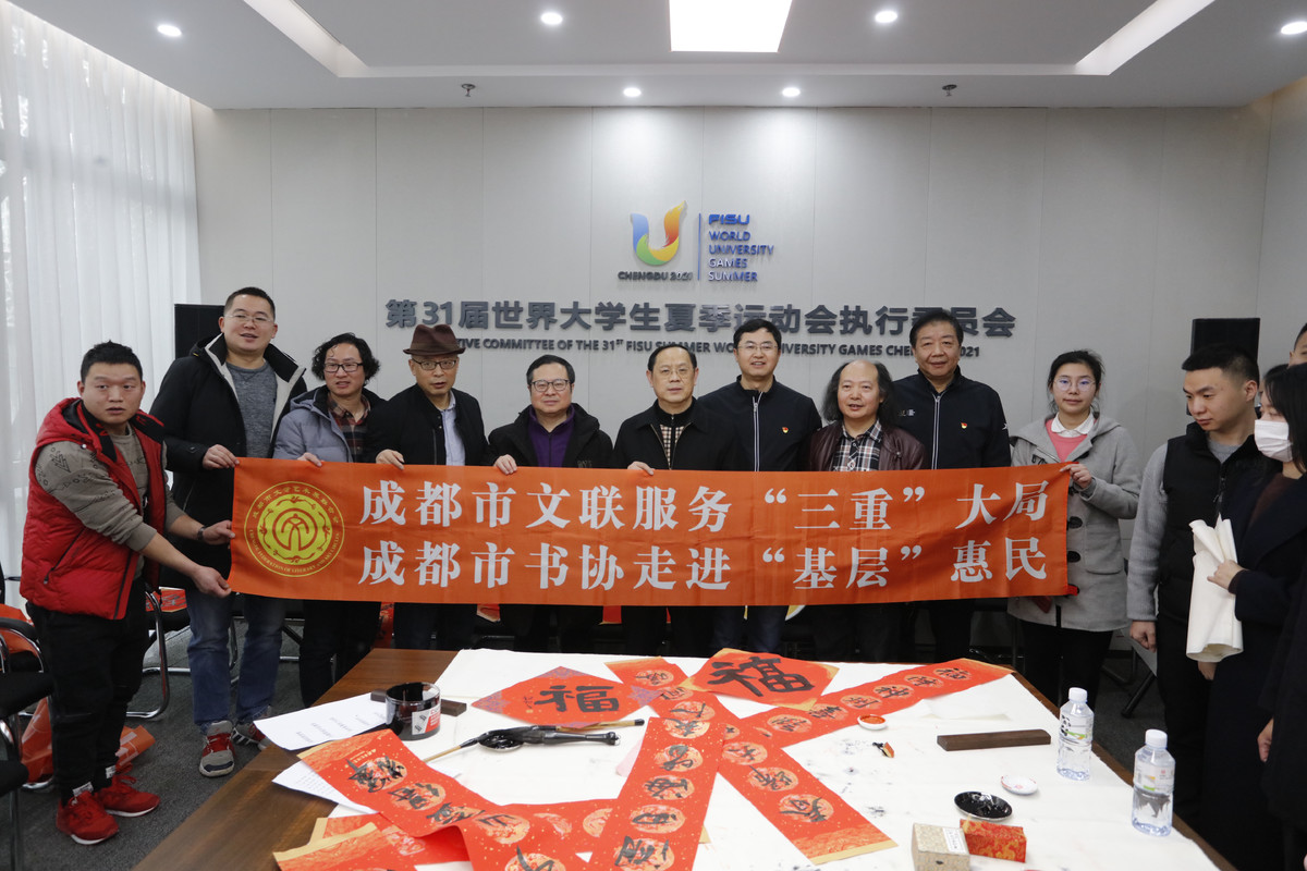 “写春联和福字,有利于展示中华书法艺术魅力,这也是传承我国悠久传统历史文化的重要载体,充满着我们对新年的美好祝愿。”成都市书法家协会主席舒炯接受记者采访时表示。成都大运会是国家大事、四川要事、成都盛事,成都市文联精心安排,组织优秀书法家聚焦成都大运会这一市委市政府中心工作,创作优秀的书法作品,慰问一线筹备人员和建设者代表,为公园城市示范区建设积极贡献文艺力量。