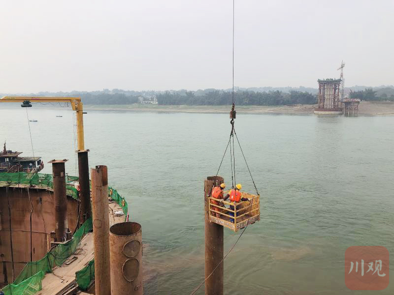 合江白沙长江大桥正在进行桥墩承台开挖,今年春节不停工,争取明年汛期前完成承台出水面。陈向前 摄
