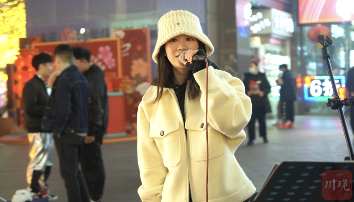 家乡在四川广元的杜沅栖,今年首次在蓉过年。春节假期,杜沅栖在大年初二有两场路演,将在锦江畔东门码头进行。她透过川观新闻的镜头,向留在成都过年的小伙伴发出邀请,“大年初二,在成都街头听我唱歌吧。”
