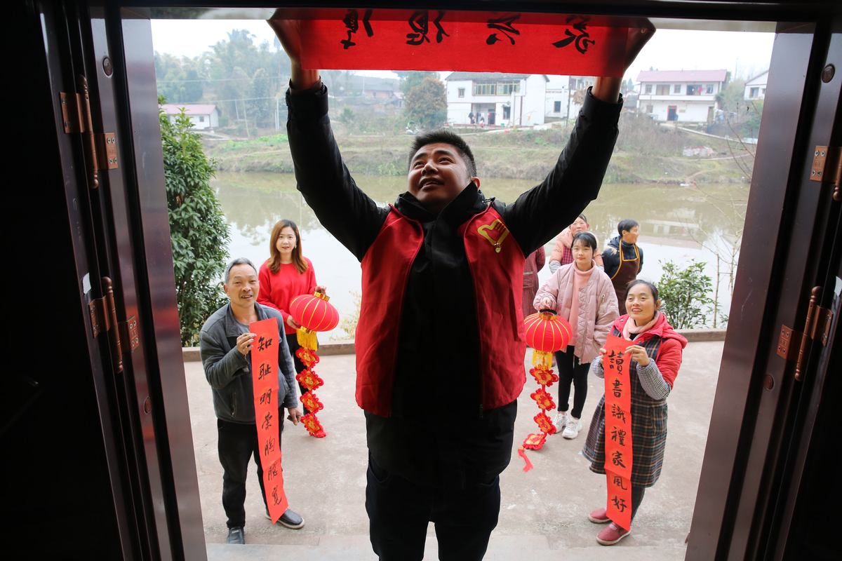 经过一个多小时的奋笔疾书,71副对联书写完成。书法家们忙得不亦乐乎,另一边,区纪委机关纪检监察干部全体出动,将刚晾干的、散发着油墨香的春联,给高屋村的71户脱贫户挨家挨户地送上门,并送上了新年祝福和美好心愿。“还是共产党好哇,不仅帮助我们脱了贫,过年了也还惦记着我们,这又专门给我们送来了春联,还给我们贴上了……”脱贫户贺守维激动地对前来贴春联的志愿者和现场的村民说道,“我们真的赶上好时代了啊!”