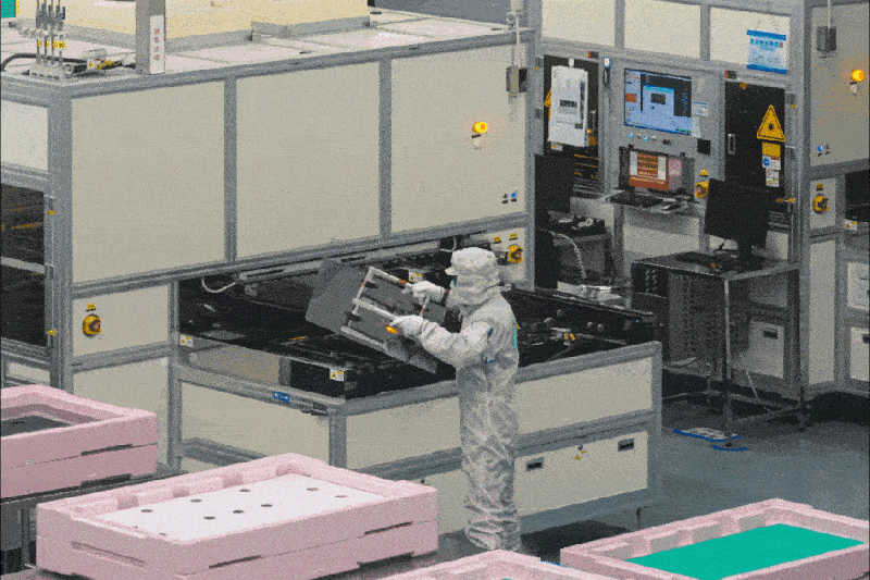 2021年2月2日,技术人员在成都G8.6液晶面板生产线上作业。该液晶面板线凭借自主设计,在新金属氧化物大尺寸面板产品方面取得重大突破,在显示性能和节能效率方面具有明显优势。