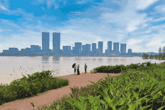 1.69万公里的天府绿道成为成都公园城市建设引领性工程,既是最普惠的民生工程,也是催生新经济、新消费的孵化地。图为2020年5月1日,市民漫游成都兴隆湖湿地公园。