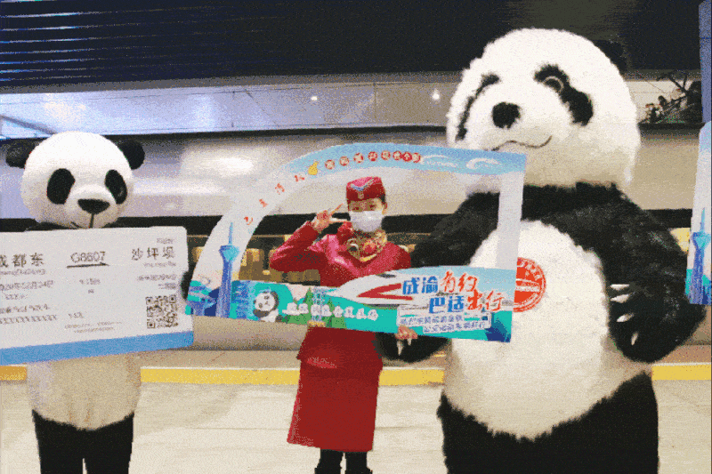 2020年12月24日,成渝高铁首开复兴号,成渝间实现高铁公交化运营1小时直达,为成渝地区双城经济圈建设提供有力的交通运输保障。当日,在成都东开往沙坪坝的G8607次复兴号动车组前,成都客运段乘务员正在迎接乘车旅客。作者:龚萱