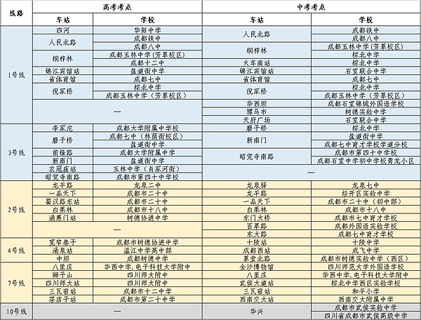 高、中考期间,成都地铁全线网136座车站将在安检处、票亭处,开通高、中考“绿色通道”,考生及家长可凭准考证优先购票、安检进站,涉及考生的乘客事务将优先处理。如有考生忘带现金及票卡,凭准考证可由绿色通道免费快速进站乘车。