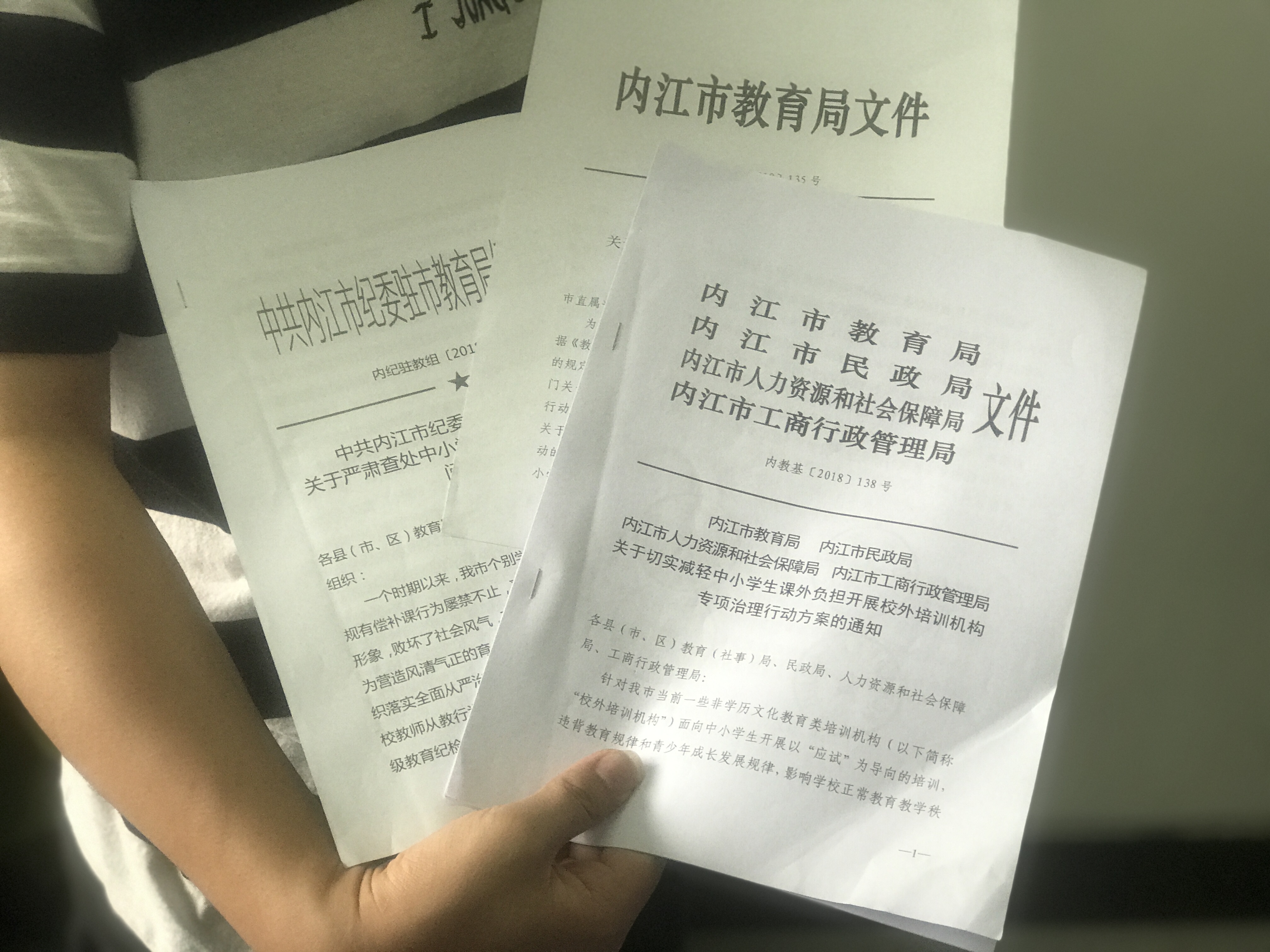 “此次力度非常大,这条高压线碰不得!”内江市教育局基教科相关负责人告诉记者,针对内江当前一些非学历文化教育类培训机构面向中小学生开展以“应试”为导向的培训,违背教育规律和青少年成长发展规律,影响学校正常教育教学秩序,造成学生课外负担过重,社会反响强烈等问题,按照中央、省市相关文件精神和工作要求,内江市教育局、民政局、人社局、工商局四部门结合内江实际,制定了《内江市关于切实减轻中小学生课外负担开展校外培训机构专项治理行动的工作方案》。
