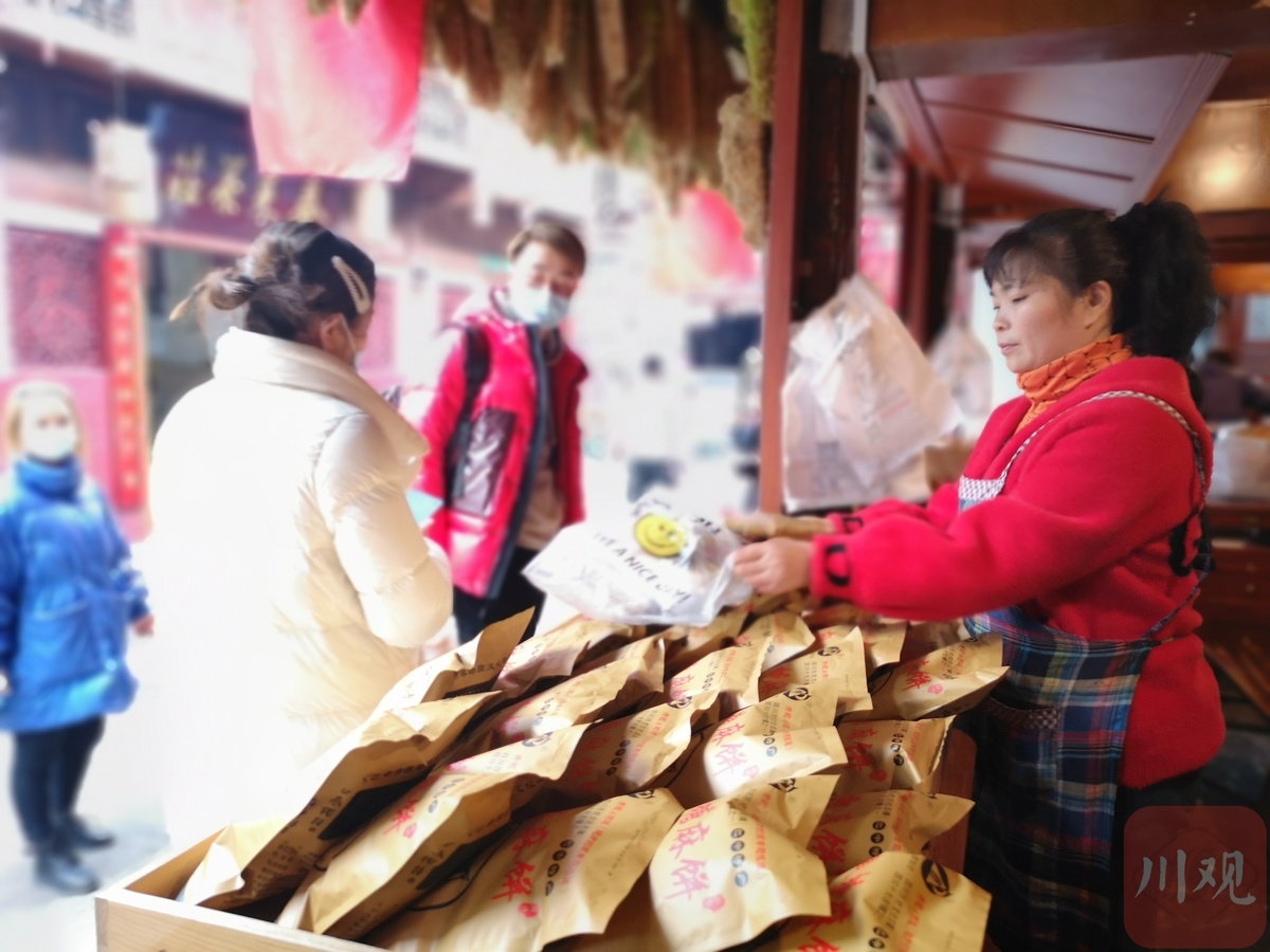 “小袋简装的自己吃,大袋精装的送亲戚朋友。”早上10点多,刘宇专程来到尹仲荣的店里,购买了10袋提糖麻饼,“老婆的弟弟回来过春节,专门买给他带回宜宾吃。”