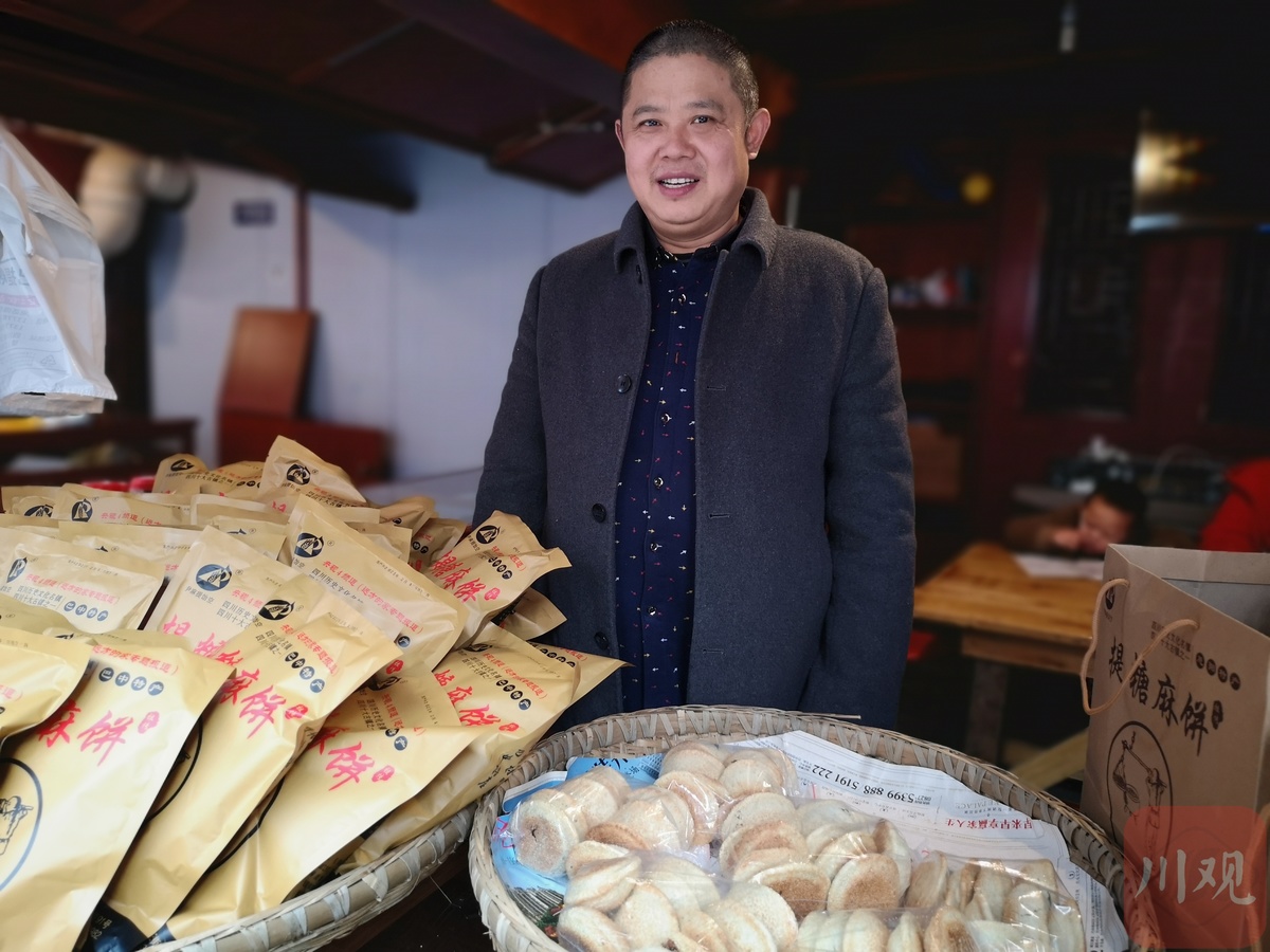 他是巴中市恩阳区恩阳提糖麻饼的传人,在恩阳古镇上开店已有30余年。