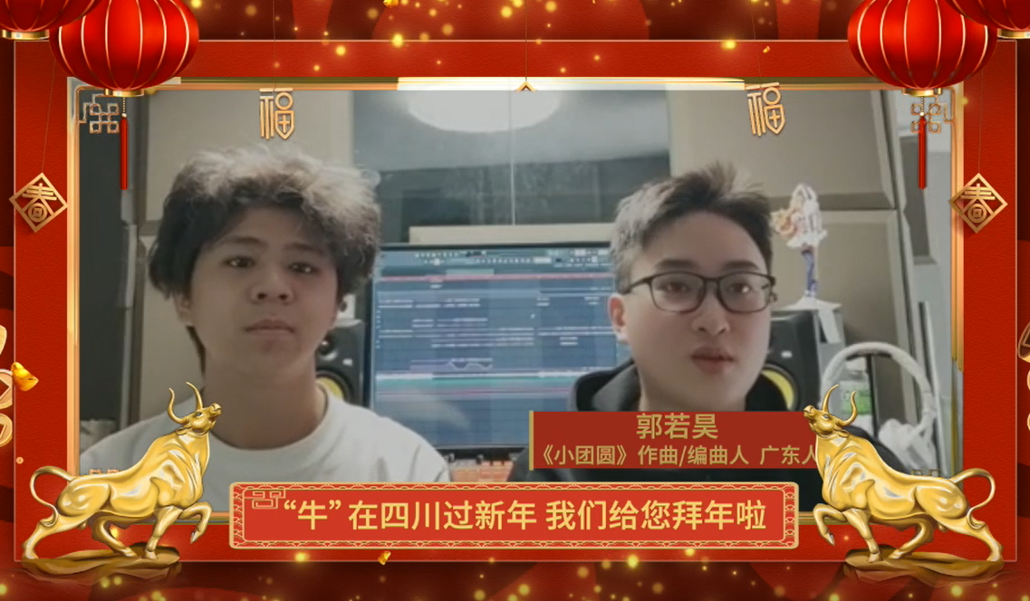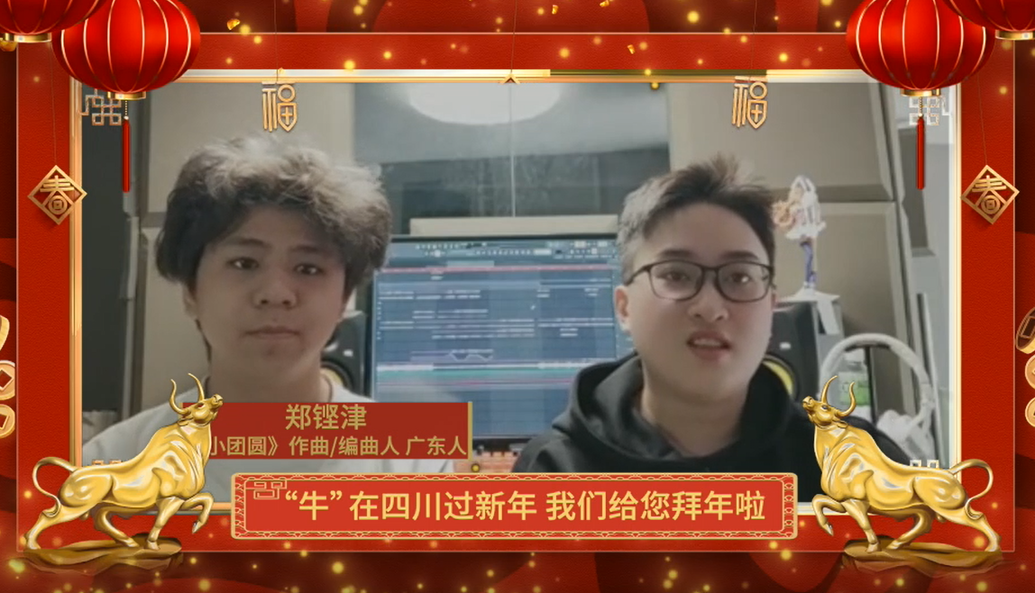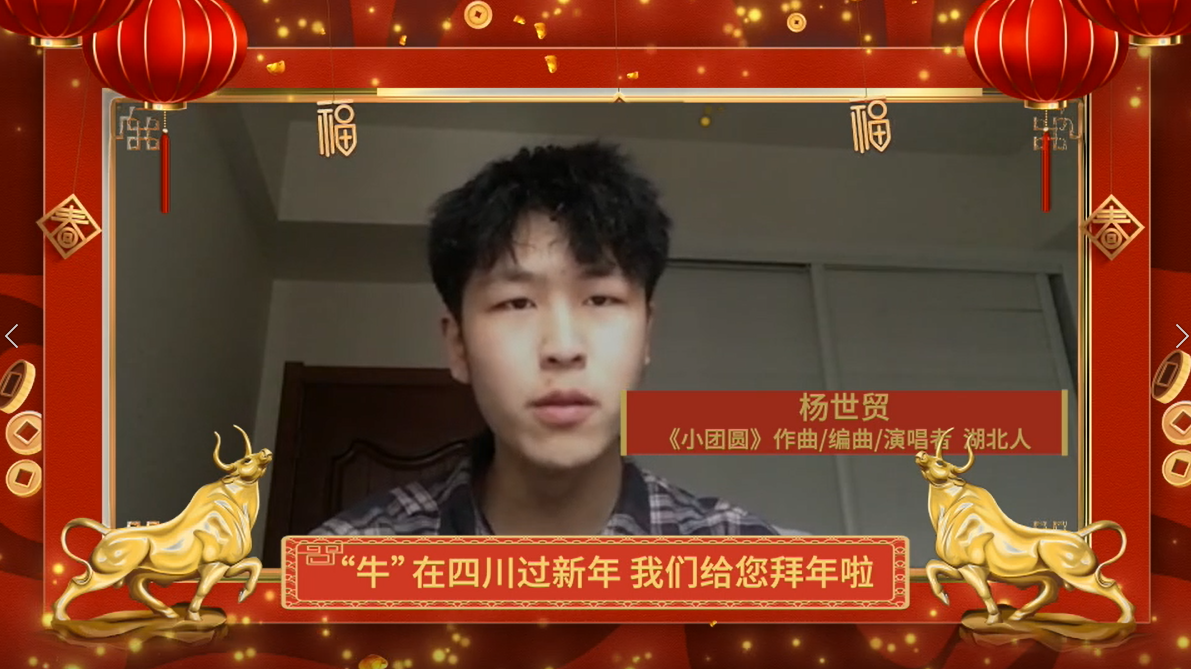 三位年轻的音乐人,在视频中送出了新春祝福:“新的一年祝在四川的各位,身体健康吉祥如意。祝大家在新的一年,完成自己的目标,做自己想做的事情。希望全体四川人民,在新的一年里大吉大利、万事如意、笑口常开、好事常来、新年快乐!”
