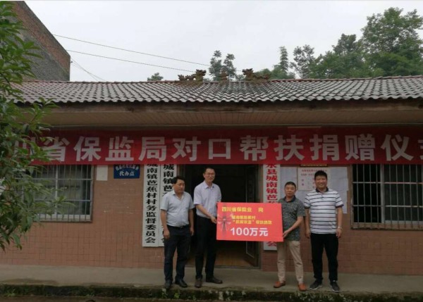 6月11日,四川保险业对口帮扶捐赠仪式在广安邻水县城南镇芭蕉村村委会举行。四川省保险行业协会秘书长周虎代表四川保险业将100万元对口帮扶资金捐赠给芭蕉村小学,用于学校迁址重建的费用。据悉,这是以四川保险全行业名义捐赠的最大单笔扶贫资助。