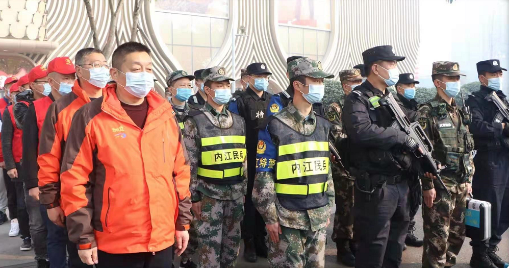 当天上午10点,2021年春节警企联勤巡逻活动正式拉开帷幕,随着内江市公安局特巡警支队支队长谢增兵一声令下,全副武装的特警支队队员、武警官兵、民兵共30余名队员与公交安全志愿人员一道,从特巡警支队出发,按照预案分组前往东兴区汉安大道、万达广场、市中区街心花园、中央路、大洲广场等车流、人流密集路段、站点进行治安巡逻、站点执勤、跟车检查。