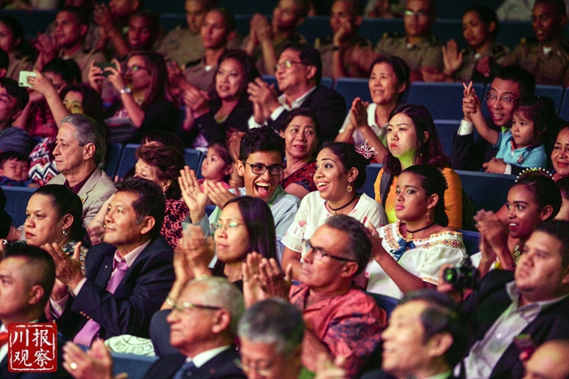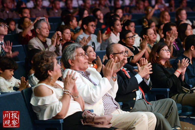 演出期间,埃尔维拉边看演出边举着手机录像。“我要录下来回去多看几次。演员们的笑容、热情很有感染力,像巴拿马的阳光一样灿烂。”埃尔维拉说。