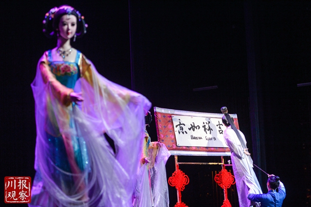 当来自南充大木偶的演员现场控制木偶在纸卷上以中文和西班牙语写下“吉祥如意”的文字时,台下响起热烈的掌声。