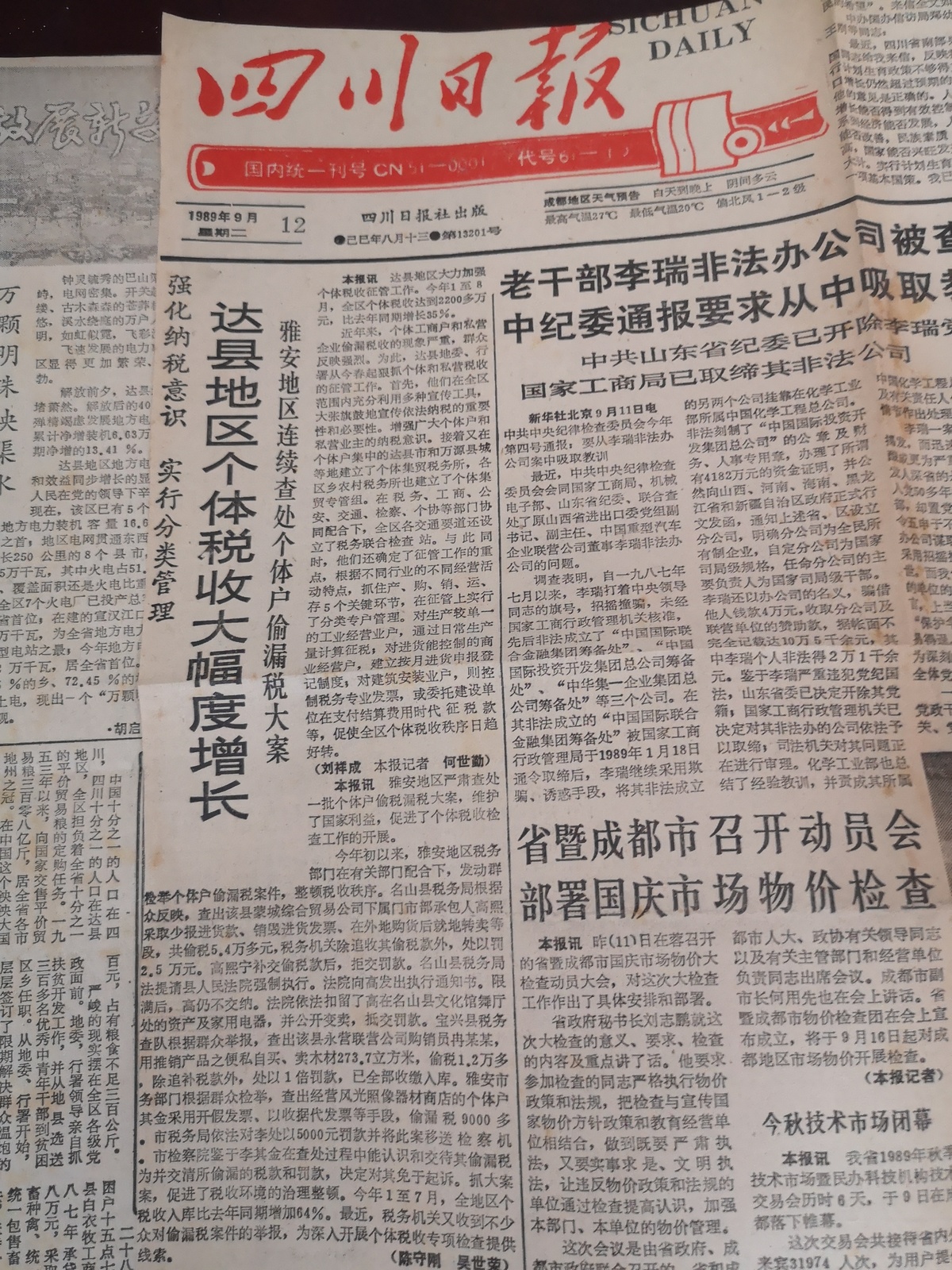 1989年9月12日的《四川日报》头版头条刊登稿件《达县地区个体税收大幅增长》,另一张“达县专页”报纸上刊载了《发展奋进中的达县地区》《蓬勃发展的巴山小钢铁》等多篇稿件,字里行间还有周永开看报时所作的笔记。“这些事是达州发展进程上的重要时刻,再拿出来读温故而知新。”周永开激动地说:“我们要在当前的发展基础上,为人民更美好的生活向前奋斗!”