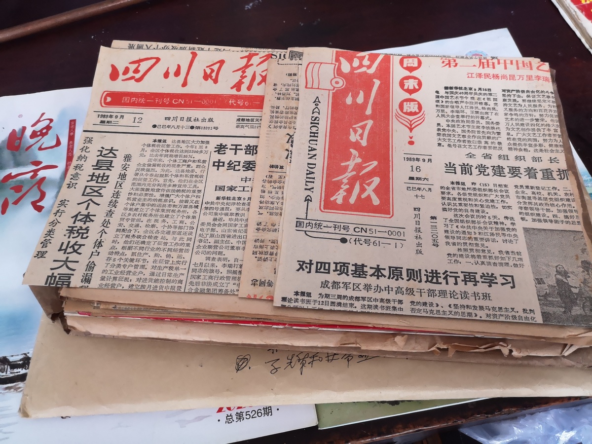 周永开打开一个陈旧的木制箱子,拿出一只印有“中共达州市纪律检查委员会”标识的信封,一摞折叠整齐的报纸从中取出,有些泛黄,《人民日报》《四川日报》等都有。