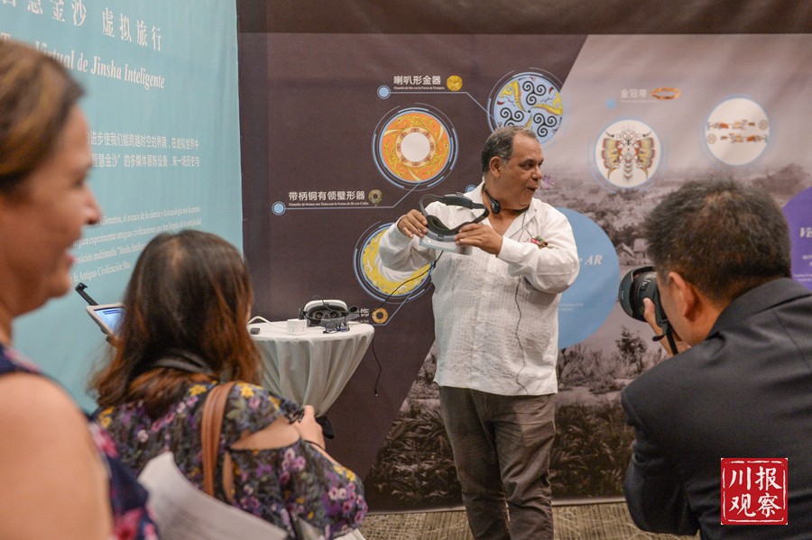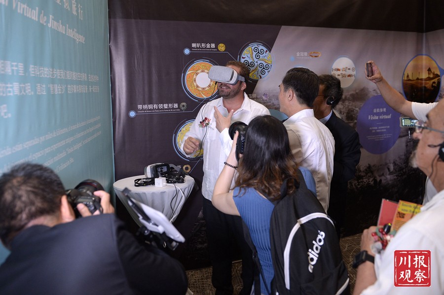 取下VR眼镜后,尤卡坦州长州长代表卡尔萨达这样评价:“虽然只看了几分钟,但是我却看到了几个世纪辉煌的古蜀文明。”