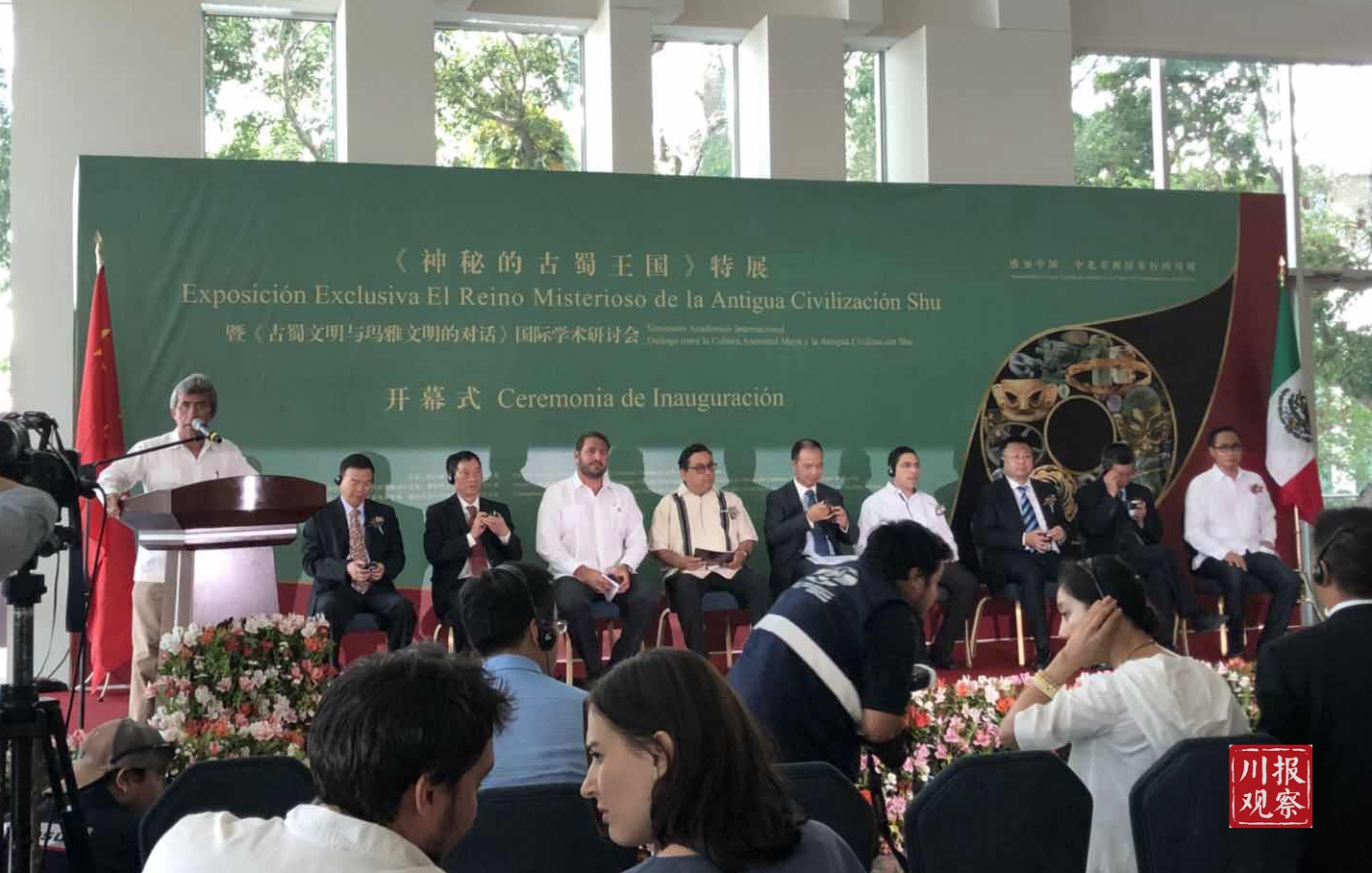 当地时间7月7日,“感知中国·中北美洲国家四川周”系列活动之一“神秘的古蜀王国”特展暨“古蜀文明与玛雅文明的对话”国际学术研讨会在墨西哥梅里达市举行。