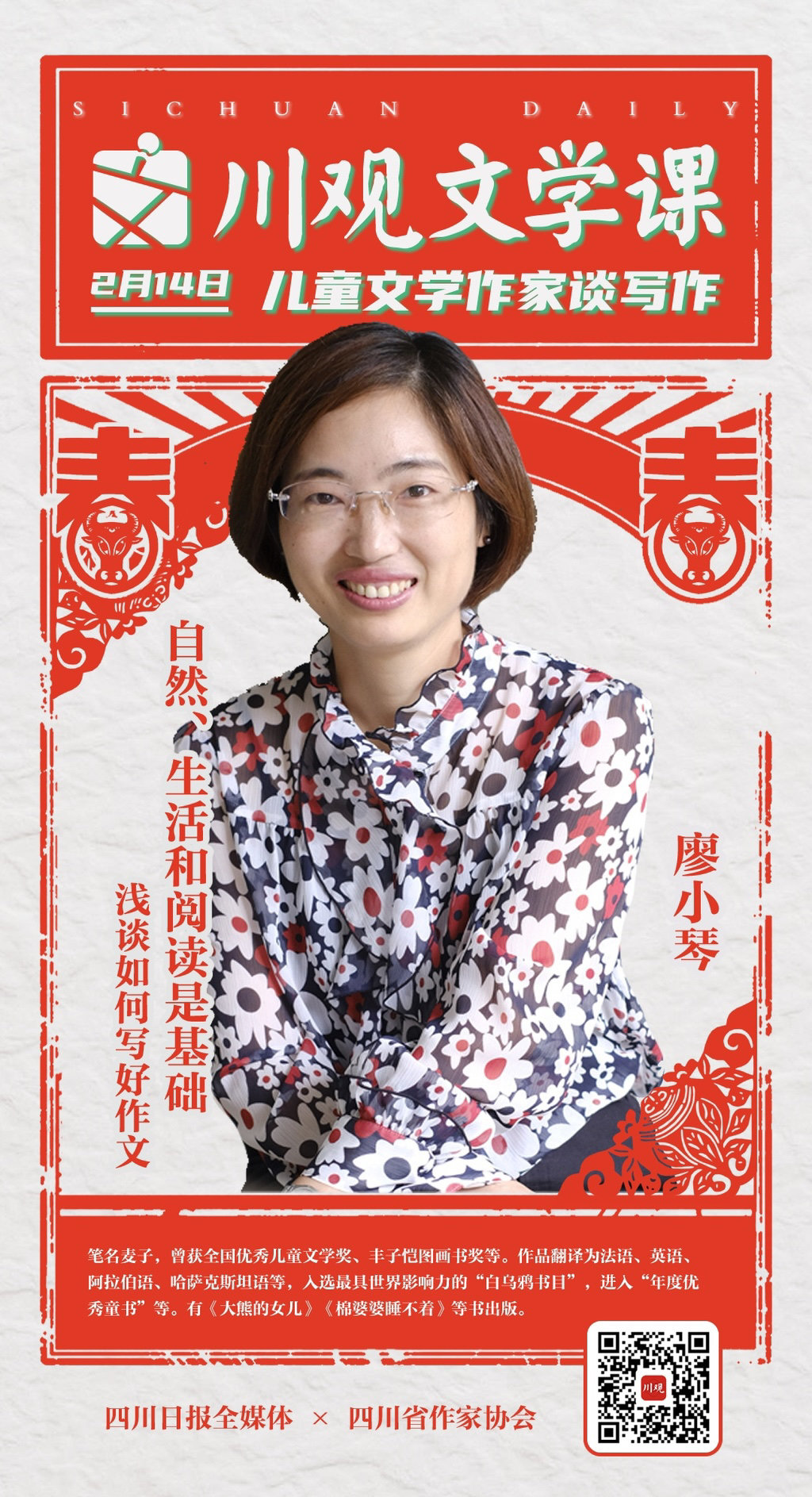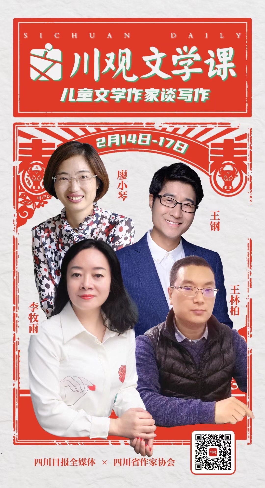 2月14日,由四川日报全媒体和四川省作家协会联袂打造的“川观文学课”正式开讲。从14日至17日,“川观文学课”连续四天推出为正在放寒假的孩子们量身定制的“儿童文学作家谈写作”特别节目,邀请廖小琴、王林柏、李牧雨、王钢等四位著名儿童文学家,通过线上网课,与孩子们分享经典作品、创作心得,以此提升孩子们的写作能力。截至15日晚22时,已上线的两期课程全网累计点击次数已超过120万次。