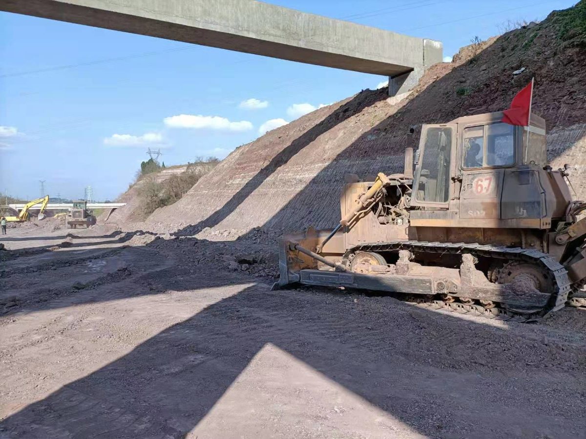记者看到,有6台工程车各司其职,正在进行路基平整的工作,10多名工人也在各自的岗位上忙碌。分布于不同路段的工人们密切协作,熟练地操作机械设备,各自进行着不同的施工作业。正在现场的内江城市过境高速公路一分部工程师范宝勇说,我们继续进行路基整平,部分桥梁现浇梁支架搭设等工作,力争5月1日前完工。