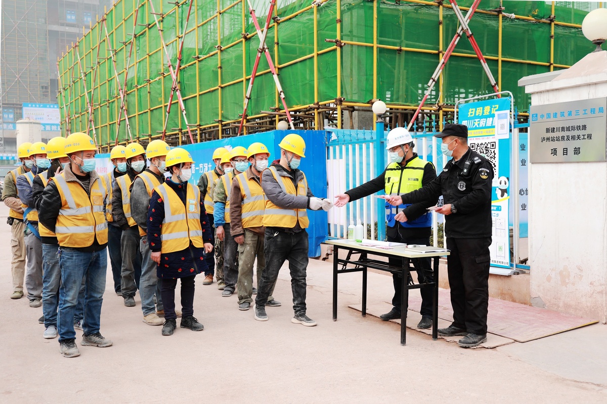 春节期间,川南城际铁路泸州站站房及相关工程项目现场上,300余名工人坚守一线。 汪静摄