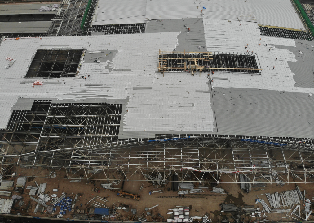 泸州高铁站房顶外幕墙已基本装设完成,整个高铁站外幕墙工期约2月余。中建三局集团有限公司泸州高铁站房项目部供图