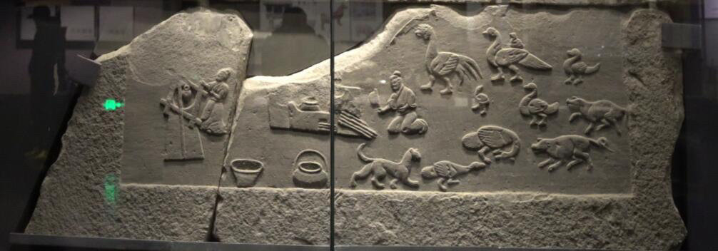 生活画像石上的老者和青年,逛博物馆的观众往往会匆匆略过,但它却是考古学者心中非常珍贵的考古材料,因为这幅图折射的正是汉代的“养老”制度。黄晓枫说,在画像石刚出土时,有学者认为老者和青年构成的图案是行乞图,但是经过仔细辨认,老者手中的鸠杖,改变了学者们的看法。因为鸠杖,就相当于当时老人的“养老证”。持有鸠杖的老人相当于有了国家的养老金,不可能沦落到行乞的地步。
