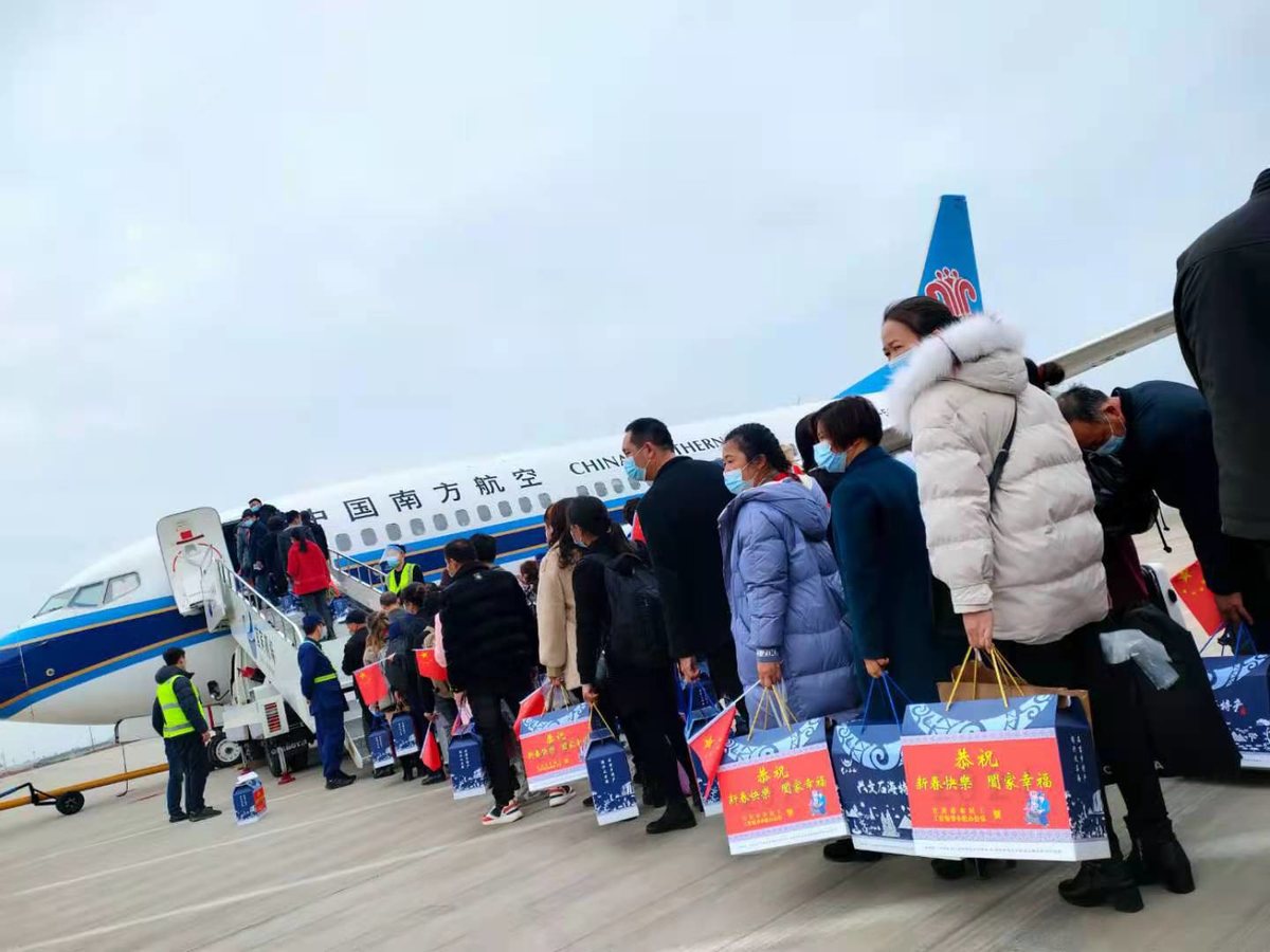 2月17日,农民正月初六,2021年春节后首架川籍农民工返岗包机从宜宾五粮液机场起飞,满载着100名川籍农民工对美好生活的向往,直飞广州白云国际机场。
