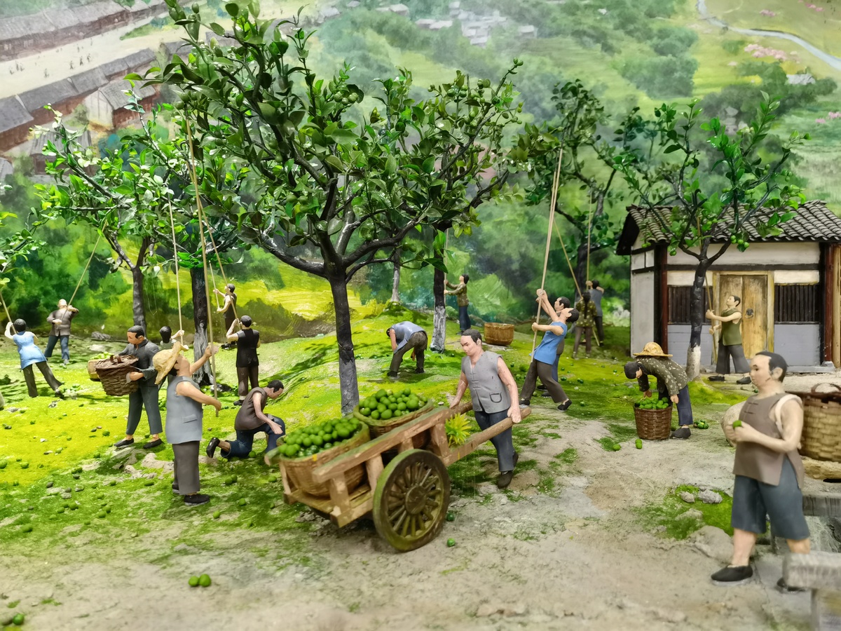 基地中,几名妇女手持竹竿做的长长修剪刀,将树上的核桃钩落在地;院坝里,一群男人光着膀子,把一箱箱晒干的核桃抬上货车……这是2月18日,记者在广元朝天核桃博览馆中,看到的一幅朝天农民喜收核桃的微缩场景。