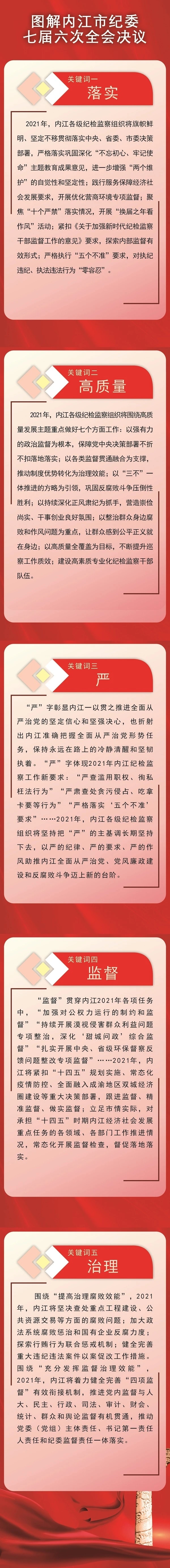 从内江市纪委七届六次全会决议中可以看出,“落实”“高质量”“严”“监督”“治理”等关键词多次出现,在记录内江推进全面从严治党向纵深发展、向基层延伸生动实践的同时,也传递着内江推进纪检监察工作高质量发展的信心、决心和恒心。