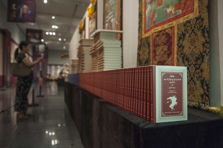 日前,在省美术馆举办的"文化甘孜 精彩荟萃"——甘孜州非物质文化遗产主题展上,展馆中数百本陈列成型的书籍宏伟壮阔,引来不少观众驻足拍照。这是展览最大的亮点,三百余本英雄史诗《格萨尔王全集》藏文版校样首次面世。本套《格萨尔王全集》由四川出版集团策划投资,喜马拉雅文库搜集整理,四川民族出版社及四川美术出版社联合出版,将成为世界上最完整、最全面的《格萨尔王传》藏文文库。