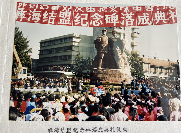 付丹丹说,为了歌颂和纪念这一历史事件,凉山人民历时两年,建成了象征民族团结的“彝海结盟纪念碑”。纪念碑以刘伯承和小叶丹为主角,高9.2米、宽7米、厚3.5米。时任中共中央总书记胡耀邦同志为纪念碑题写了碑名。塑像背面的碑文是经中共中央宣传部审定批准后,市人民政府立。