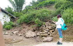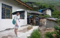曲依乡甲古村“四治”专员袁敏走访贫困户途中,(路途危险下图)为扶贫攻坚工作忍痛割爱剪掉披肩长发的曲依乡甲古村“四治”专员袁敏走访贫困户
