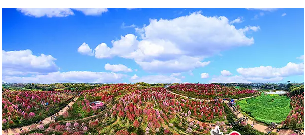 其实,千秋桃园的美景远不止于此。今天,这片醉人的土地,已经打造成了三月桃花四月樱,六月紫薇十月菊,一年皆有好风景的占地1800亩的田园综合体项目,是全市在建的最大新型农民社区,是城里人节假日放飞身心的理想家园,是他们家门口的诗和远方。