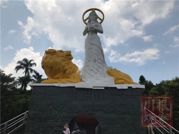 五粮液股份有限公司副总经理彭智辅告诉记者,这尊夷狄雕像,身着简陋,是因为她来自奴隶时代;脚踩雄狮,这寓意着智慧和力量,而狮子来自西方,这样设计也是东西方文化结合的象征。