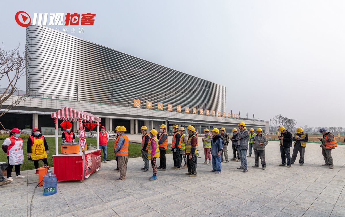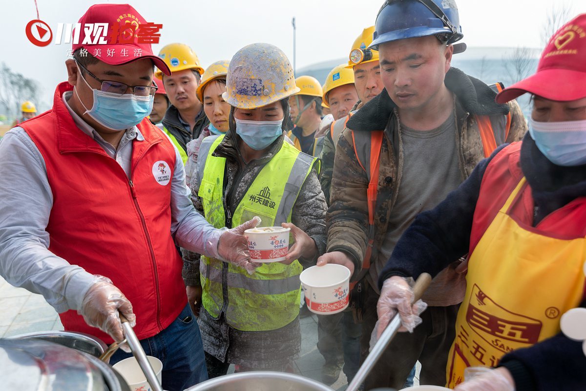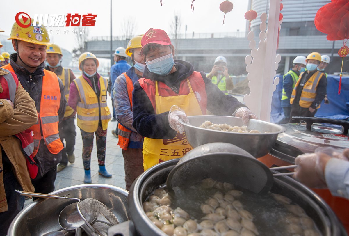 为了响应“就地过节”的号召,也为确保工期进度,春节期间,东安湖大运会场馆近1000名工人留守现场,继续推进后续施工。建设方专门为留守建设者煮饺子送温暖,让大家都能够在春节加班之后第一时间真切感受到自己的辛勤付出是值得的。