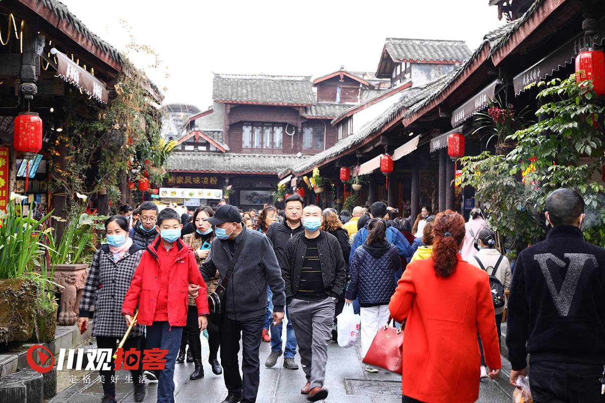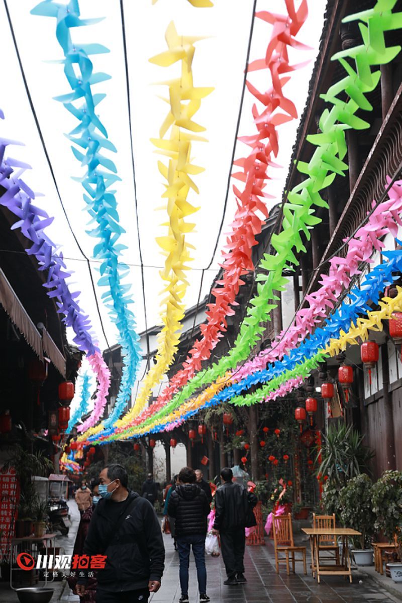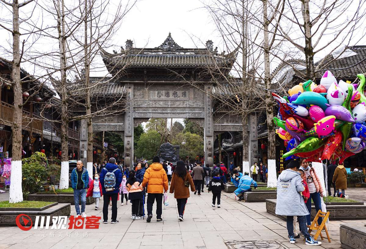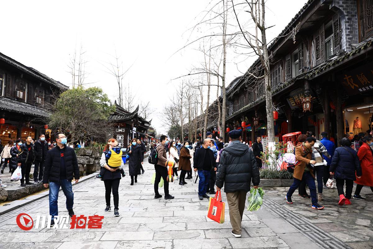 大年初四,街子古镇下起了小雨,古镇上依旧游客如织,人们在欢乐祥和中享受春雨,欢度春节。
