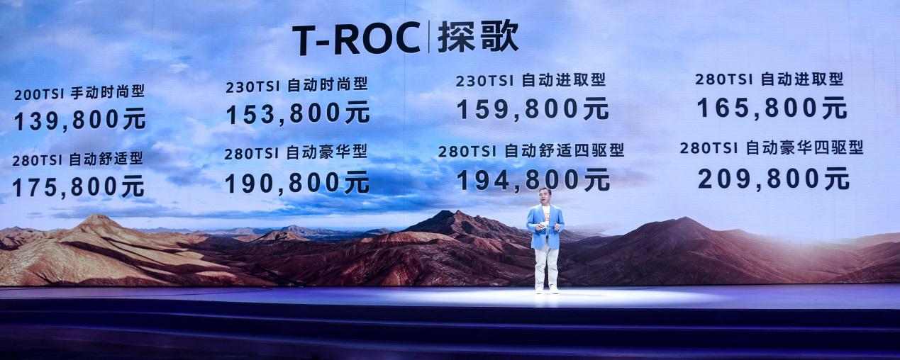 7月30日晚,一汽-大众大众品牌首款SUV——T-ROC探歌在深圳正式上市,新车提供200TSI、230TSI和280TSI三款动力选择,并提供四驱版本,共8款车型,售价区间13.98-20.98万元。作为一汽-大众为年轻用户量身打造的纯正德系SUV,T-ROC探歌是一汽-大众持续推进品牌年轻化战略的重要一步,也势必结缘更多的年轻自信一代。