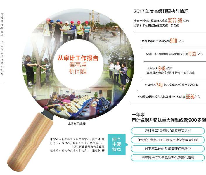 记者从会上获悉,这份审计工作报告,是党的十九大作出改革审计管理体制的重大决策部署后,省政府向省人大常委会提交的首份审计工作报告,披露了2017年度省级预算执行和其他财政收支的审计情况。该报告在着力客观揭示问题的同时,更加注重深挖问题背后的问题,深入分析问题背后的体制障碍、机制缺陷、制度漏洞,审计监督的高度、广度和深度得到进一步拓展。