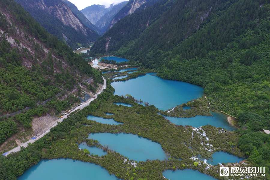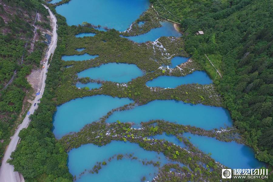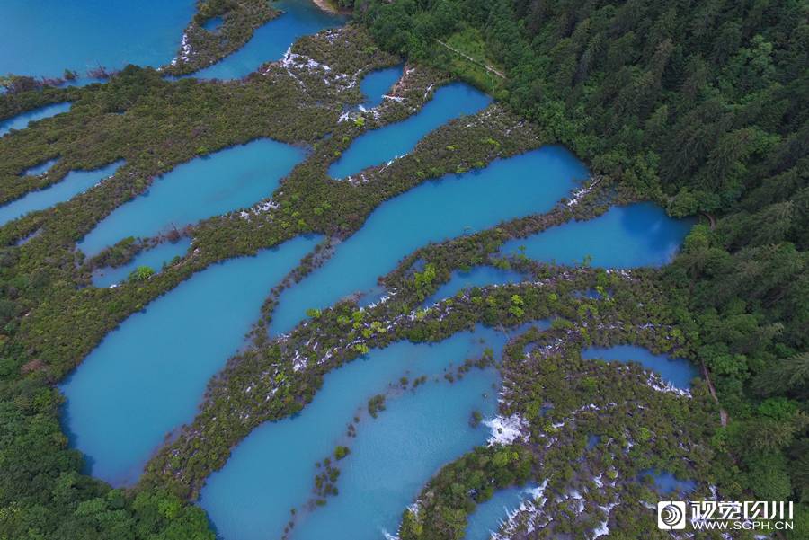 40多个湖泊,犹如40多面晶莹的宝镜,顺沟叠延五、六公里。 树正群海由大小19块海子所组成,19块海子就如19块碧绿的翡翠,镶嵌在这深山幽谷之中,中间由绿树、银色的小瀑布相连,就如给树正寨带上了一条美丽的翡翠项链。