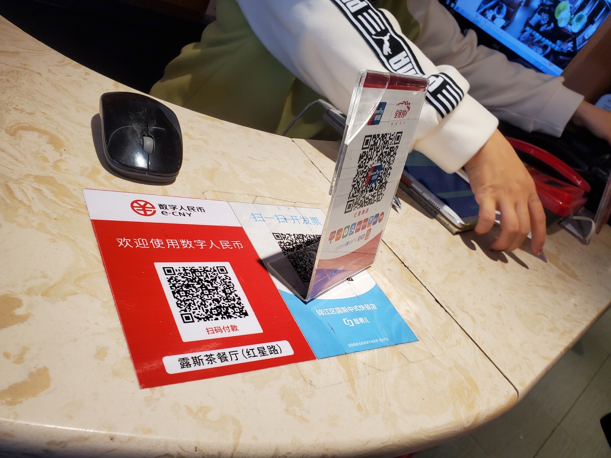春熙路一家餐厅内放置的“数字人民币”支付标识