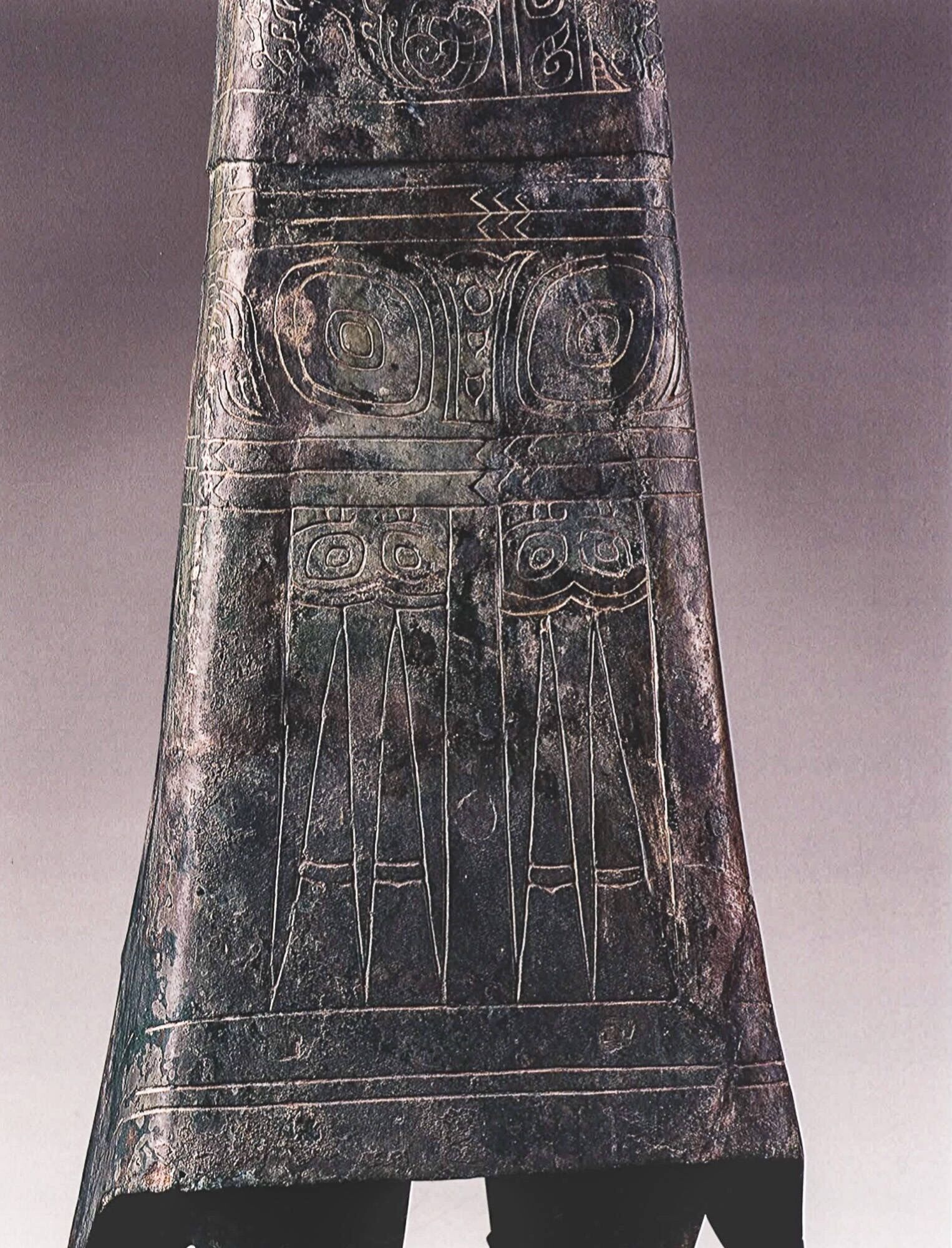 纹饰以龙纹为主,兼有兽面纹、鸟纹、虫纹、回纹等。如果转到大立人的身后,还可以看出他的衣服后端呈燕尾状。