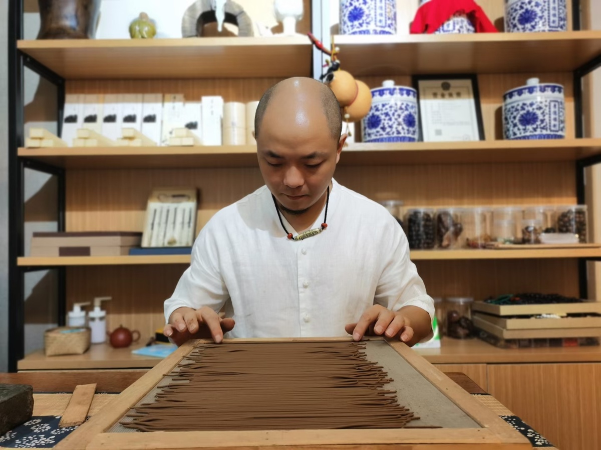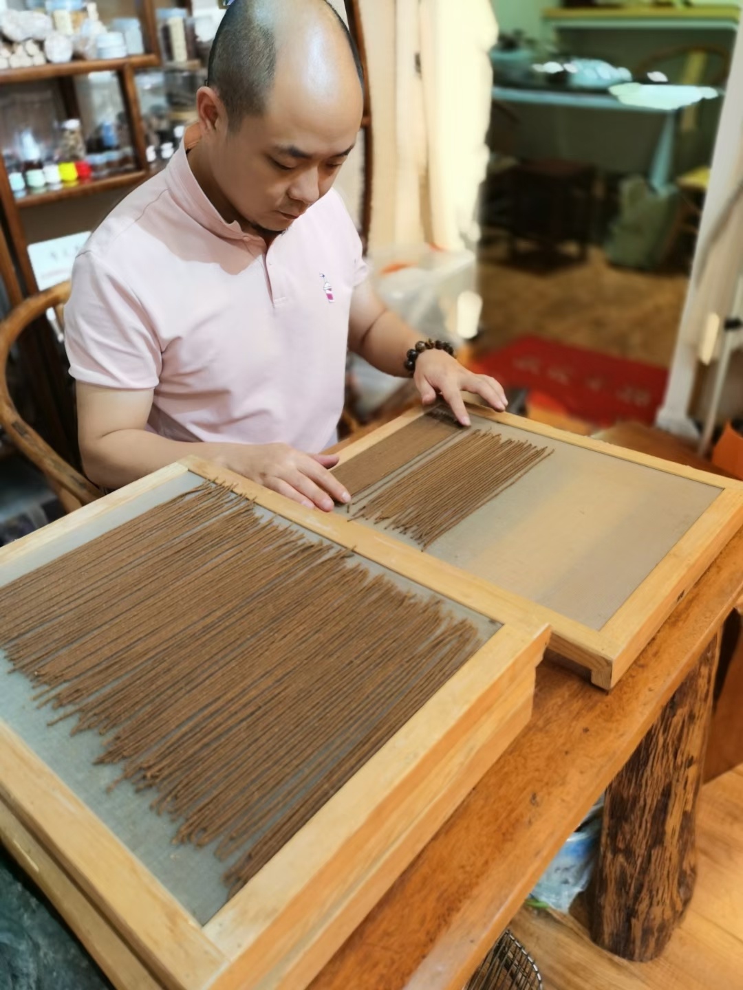 2月18日年初七,徐仕伟在文殊院附近的店铺一早就开工了。做文玩生意起家的他,因为沉溺手工制香而错失一个文玩黄金期,但是能传播传统香文化,让古籍里的香方再次飘香人间,他认为其价值无量,更何况随着人们生活日益精致,他的香品营收也占到总收入的一半了。