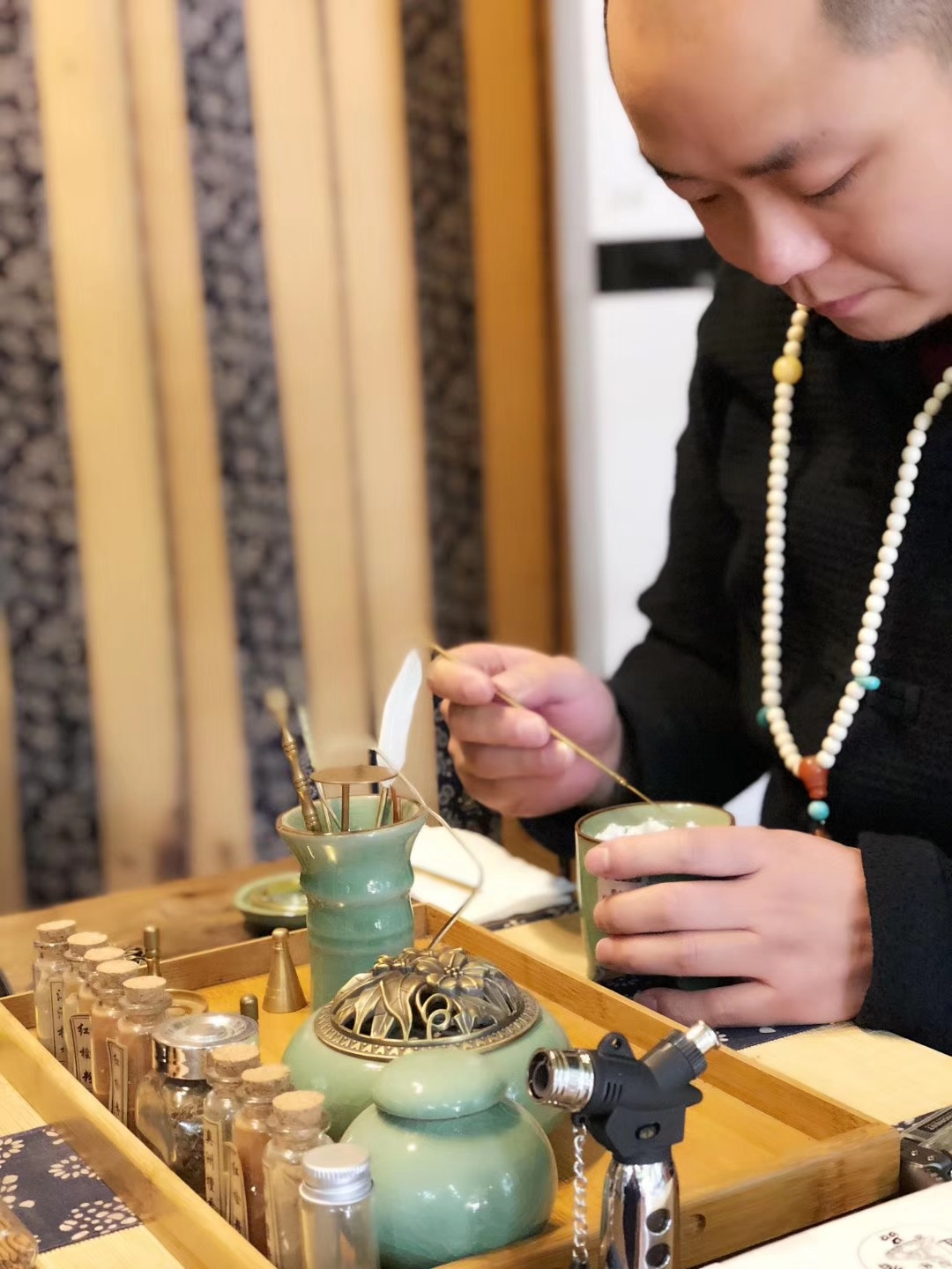 “历史上留下来的香谱有很多,比如《陈氏香谱》、《香乘》等,前者提到的香料就有400多种,但不一定适合现代人复制。像龙涎香、麝香、冰片等名贵的原材料,有些没有了,有些是人工合成的,还有的因为药材不再地道,成分含量的变化等,都影响最后的香味。因此古籍只能做参考,另一方面也要跟当代的老师学习。”徐仕伟说道,庆幸的是,他遍访的道家、佛家、中医老师,都毫无保留的传授了精粹。