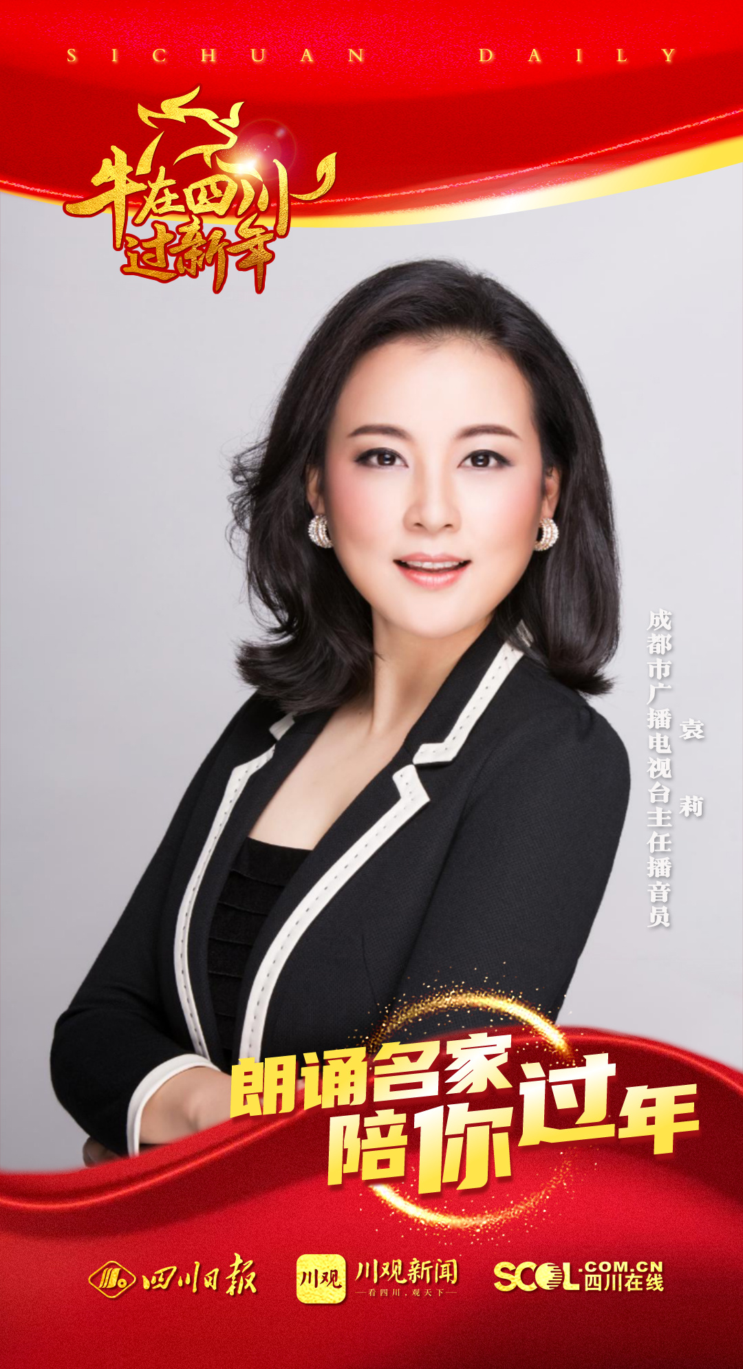 袁莉,成都市朗诵艺术家协会理事,成都市广播电视台主任播音员,2018年中广联合会“十优”播音主持作品奖,中国电视“金鹰奖”入选节目主持人,全国广电系统“青年岗位能手”,2018年《中国城市春晚》优秀主持人,四川省“十佳”电视艺术工作者,成都市优秀女新闻工作者、成都市广播电视台十优主持人。