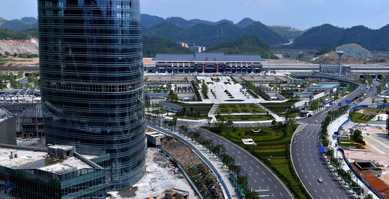 遵义高铁站旁,高楼大厦鳞次栉比,占地1080亩的遵义高铁新城正成为新的城市中心。