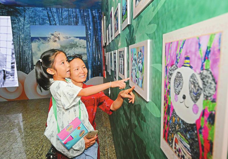“熊猫中国·四川主题展”展出的少儿画作,是从川报观察发起的“非一般的大熊猫”全球少儿绘画大赛中优选出来的。透过这些画作,观众能看到一个个彩色的、快乐的大熊猫。