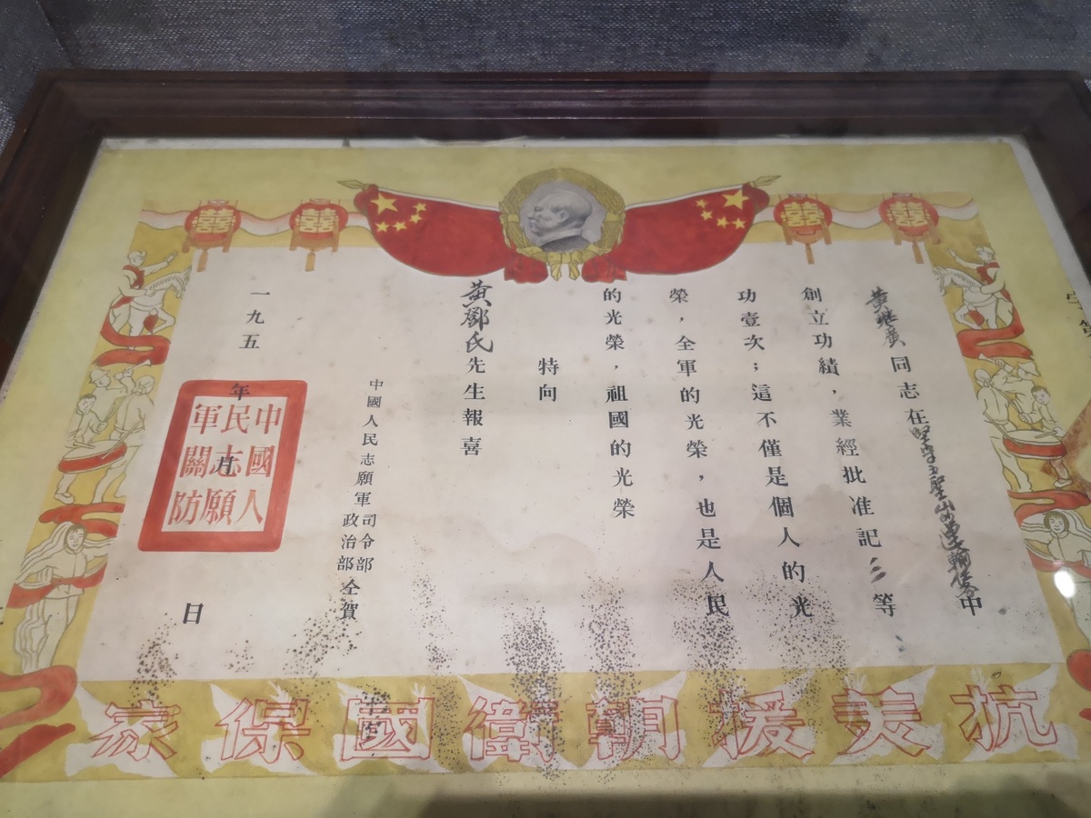 黄继光在朝鲜荣立三等功的喜报(余如波 摄)
