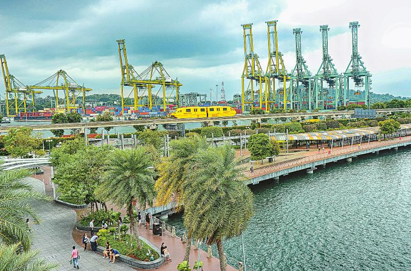 有着先进的港口设施和现代管理体系的新加坡吉宝港。 何海洋摄