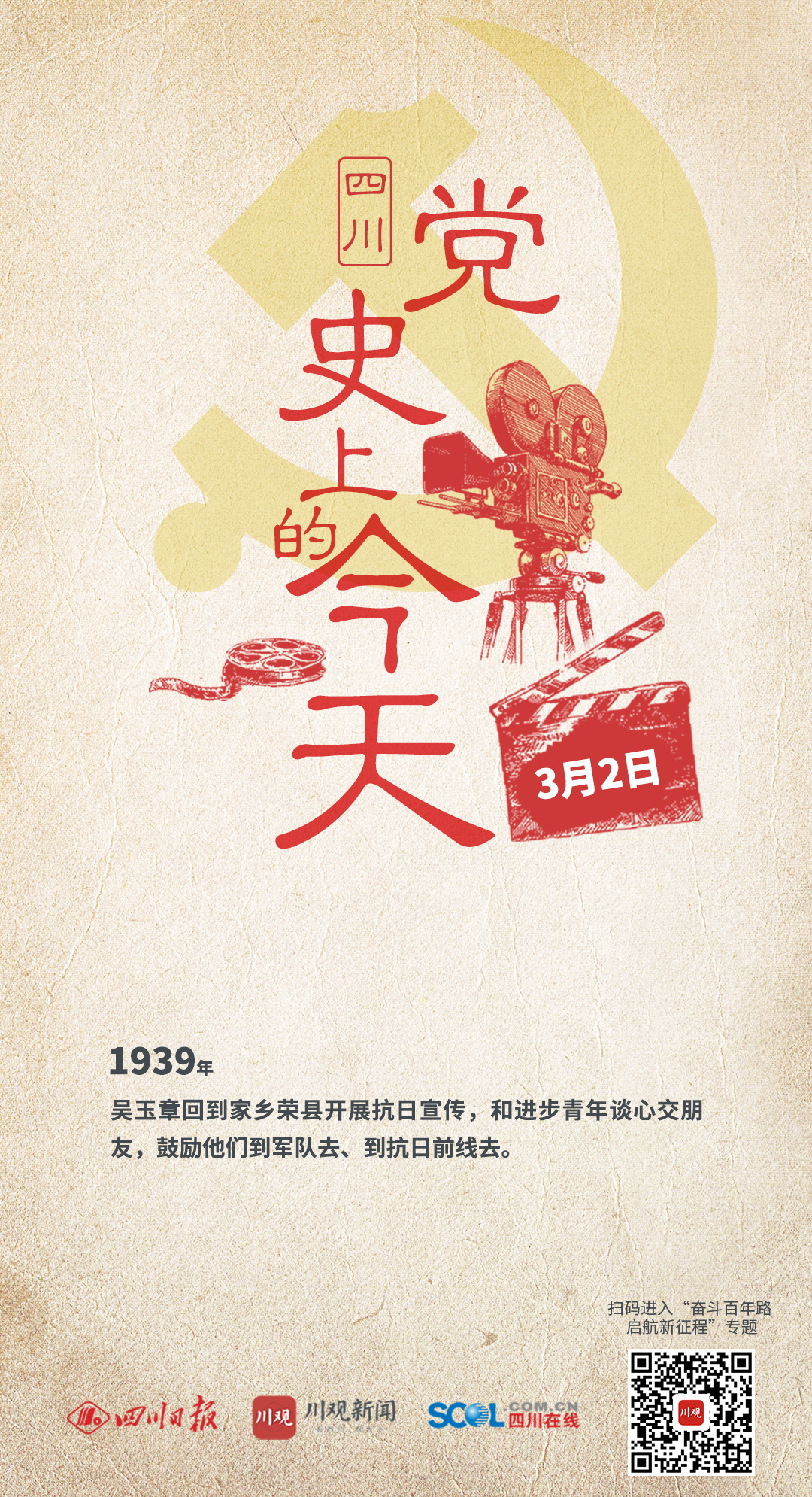1939年 吴玉章回到家乡荣县开展抗日宣传,和进步青年谈心交朋友,鼓励他们到军队去、到抗日前线去。